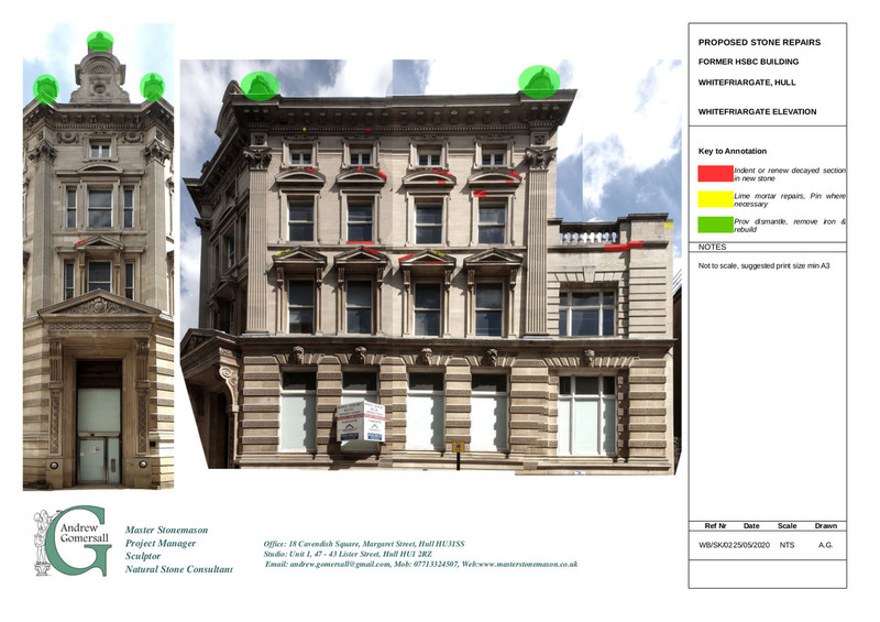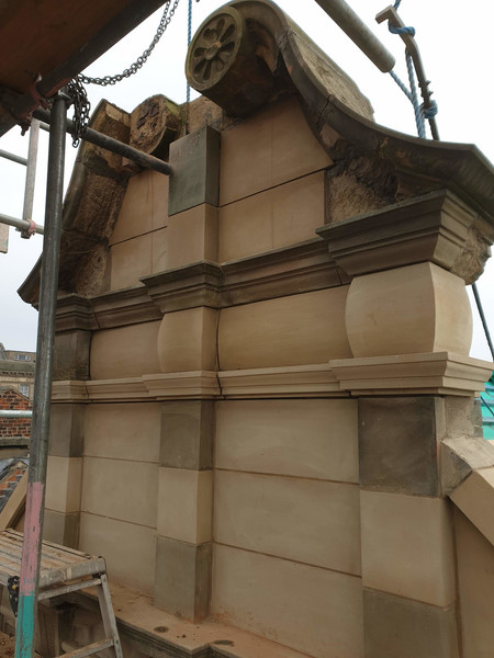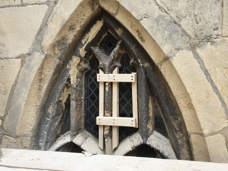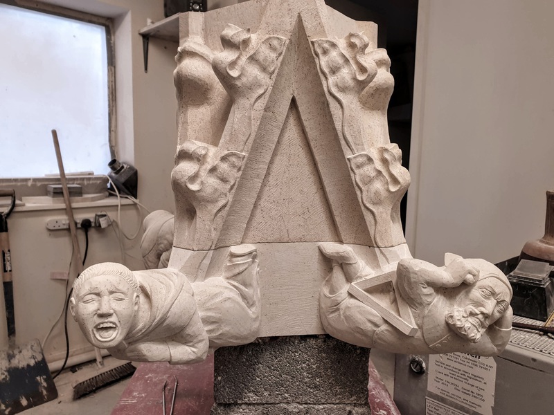 Phase 1 = Repairs & restoration of stonework to the vestries including supply & construction of new doorway & carved portrait label stops.